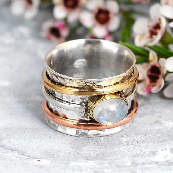 🎁Wide Band Two Tone Moonstone Spinner Ring